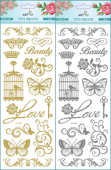 מדבקות הגירוד מגיעות במגוון דגמים מרהיבים. כל דגם קיים בזהב עשיר ובכסף בוהק.